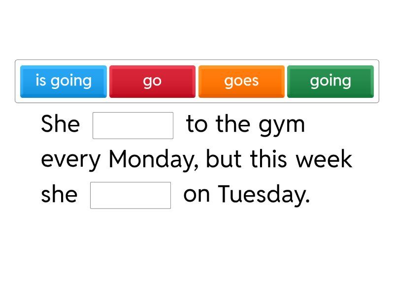 She ____ to the gym every Monday, but this week she ____ on Tuesday. Look! It ____ outside. My brother ____ video games right now. We ____ at 5 pm even though we usually ____ dinner at 7 pm. I____ TV at the moment; I____ my homework. Mark ____ as a teacher, but today he ____ in a café. The baby always ____ when he ____ hungry. Listen! Someone ____ on the door. She ____ a book before bed every night, but tonight she ____ a movie. My parents ____ to Spain this week, so I____ at my aunt’s house. What ____ now? I____. What ____? I____ a student. Sarah is in a student exchange, so she ____ in Japan for a year.