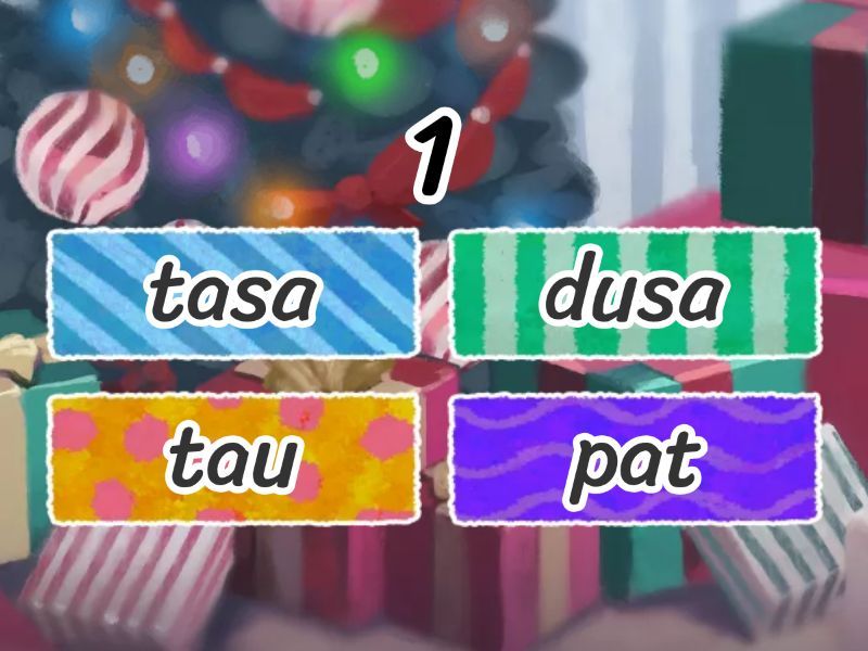 1) 1 a) tasa b) dusa c) tau d) pat 2) 2 a) ima b) dusa c) num d) pitu 3) 3 a) vau b) siva c) tau d) mas'an 4) 4 a) vau b) ima c) pitu d) pat 5) 5 a) ima b) dusa c) mas'an d) vau 6) 6 a) pat b) num c) siva d) pitu 7) 7 a) num b) vau c) pitu d) tasa 8) 8 a) num b) siva c) pat d) vau 9) 9 a) siva b) dusa c) num d) mas'an