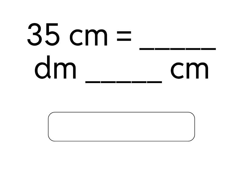 1 m = _____ cm, 1 dm = _____ cm, 1 m = _____ dm, 35 cm = _____ dm _____ cm, 3 m 8 dm = _____ dm, 20 dm = _____ m, 3 m=______dm, 4 m=______dm, 65 dm=____m, 7 m 5 dm=_____dm, 9 m + 5 dm =______dm, 8 m - 6 dm =_____dm, 40 m - 10 m=______m, 1 m - 8 dm = _____dm, 6 m = ____dm, 100 cm = _____m, 90 cm =_____dm, 1 m - 46 cm =___cm, 30 cm + 7 dm =____ dm, 60 cm + 2 dm + 20 cm =___ dm.