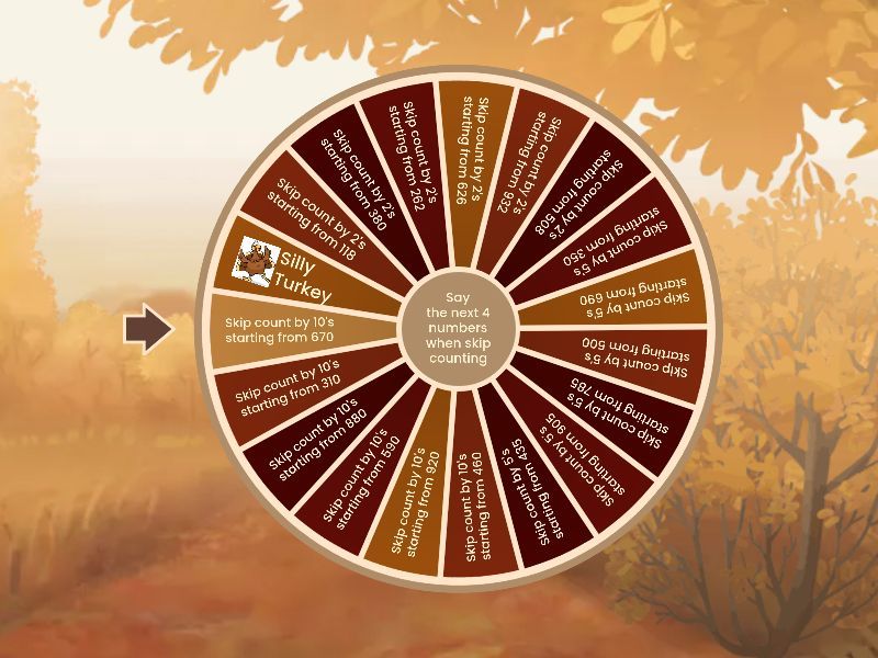 1) Silly Turkey 2) Skip count by 2's starting from 118 3) Skip count by 2's starting from 380 4) Skip count by 2's starting from 262 5) Skip count by 2's starting from 626 6) Skip count by 2's starting from 932 7) Skip count by 2's starting from 508 8) Skip count by 5's starting from 350 9) Skip count by 5's starting from 690 10) Skip count by 5's starting from 500 11) Skip count by 5's starting from 785 12) Skip count by 5's starting from 905 13) Skip count by 5's starting from 435 14) Skip count by 10's starting from 460 15) Skip count by 10's starting from 920 16) Skip count by 10's starting from 590 17) Skip count by 10's starting from 880 18) Skip count by 10's starting from 310 19) Skip count by 10's starting from 670