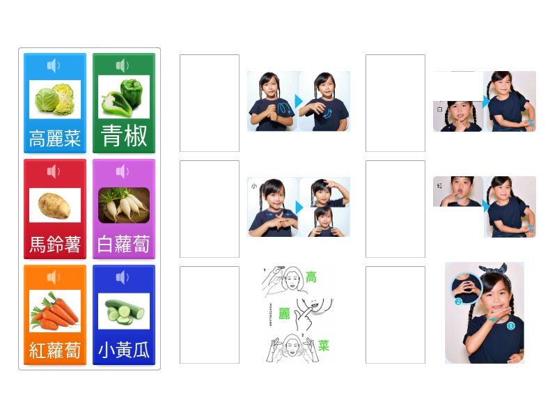 小黃瓜, 青椒, 馬鈴薯, 紅蘿蔔, 白蘿蔔, 高麗菜,
