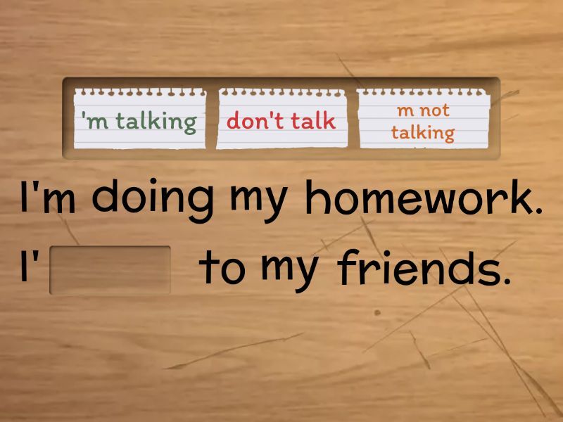 I'm doing my homework. I'____ to my friends. The students can't talk right now. They____. Look at this photo of my new bike! ____ I can't use the laptop because Matt____ it. My friends usually ____ shopping on Saturday afternoon. What ____ today? Henrik always ____ a lot of photos on his phone. We____ an awesome film at the moment.