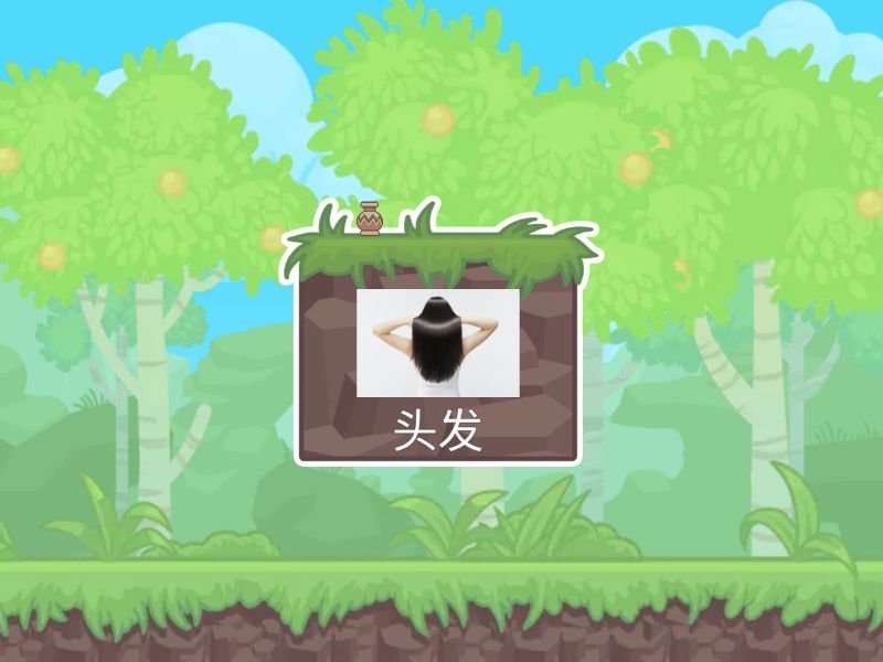 眼睛, 鼻子, 嘴巴, 耳朵, 头发, 肩膀, 膝盖, 脚, 手, 牙.