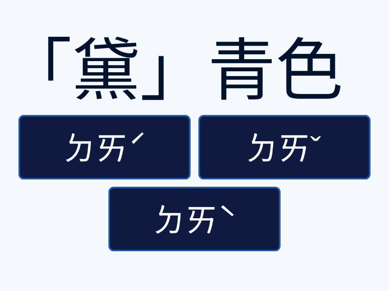 1) 「黛」青色 a) ㄉㄞˊ b) ㄉㄞˇ c) ㄉㄞˋ 2) 長相俊「ㄑㄧㄠˋ」 a) 俏 b) 峭 c) 翹 3) 臨風顧「ㄆㄢˋ」 a) 判 b) 盼 c) 畔 4) 「翹」著尖尖的長喙 a) ㄑㄧㄠ b) ㄑㄧㄠˋ c) ㄑㄧㄠˊ 5) 「ㄓㄥˋ」重其事 a) 正 b) 鄭 c) 政 6) 「從」容自如 a) ㄘㄨㄥˇ b) ㄘㄨㄥˊ c) ㄘㄨㄥ 7) 發人深「ㄒㄧㄥˇ」 a) 省 b) 醒 c) 形 8) 「篤」學 a) ㄉㄨ b) ㄉㄨˇ c) ㄉㄨㄥˇ 9) 「ㄕㄨㄣˋ」息萬變 a) 瞬 b) 順 c) 舜 10) 內「ㄏㄢˊ」 a) 寒 b) 涵 c) 韓 11) 無限的迷「ㄨㄤˇ」 a) 往 b) 網 c) 惘 12) 各種類「ㄒㄧㄥˊ」 a) 刑 b) 形 c) 型 13) 玲「ㄌㄨㄥˊ」飽滿 a) 龍 b) 隆 c) 瓏 14) 市聲鼎「沸」 a) ㄈㄟ b) ㄈㄟˋ c) ㄈㄟˇ 15) 相「ㄒㄧㄥˊ」見絀 a) 形 b) 型 c) 刑 16) 一「行」白鷺上青天 a) ㄏㄤˊ b) ㄒㄧㄥˊ c) ㄒㄧㄥ 17) 「搏」扶搖而直上 a) ㄅㄛ b) ㄅㄛˊ c) ㄅㄛˇ 18) 四肢「ㄑㄩ」幹 a) 軀 b) 曲 c) 區 19) 巧舌如「ㄏㄨㄤˊ」 a) 皇 b) 黃 c) 簧 20) 「ㄩㄥ」腫不堪 a) 雍 b) 庸 c) 臃
