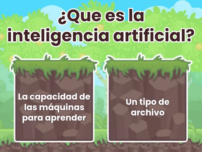 1) ¿Que es la inteligencia artificial? a) La capacidad de las máquinas para aprender b) Un tipo de archivo 2) ¿Un asistente virtual es un ejemplo de IA? a) Verdadero b) Falso 3) ¿Cuál de estas tareas puede hacer IA? a) oler alimentos b) Reconocer voces 4) ¿La IA siempre funciona sin datos a) Verdadero b) Falso 5) ¿Cuál de las siguientes NO usa inteligencia artificial? a) Un robot que aprende movimientos. b) Un lapiz común.