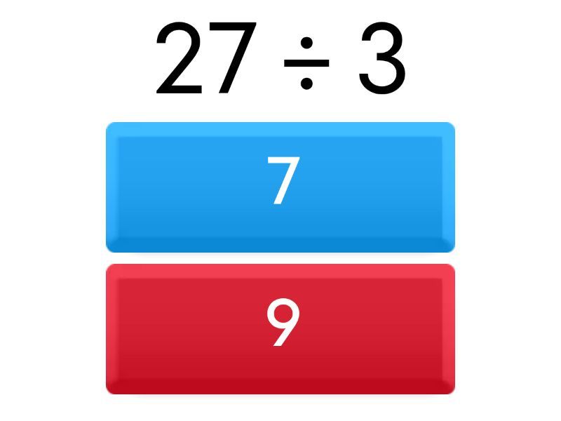 1) 27 ÷ 3 a) 7 b) 9 2) 36 ÷ 6 a) 6 b) 5 3) 45 ÷ 5 a) 10 b) 9 4) 81 ÷ 9 a) 8 b) 9
