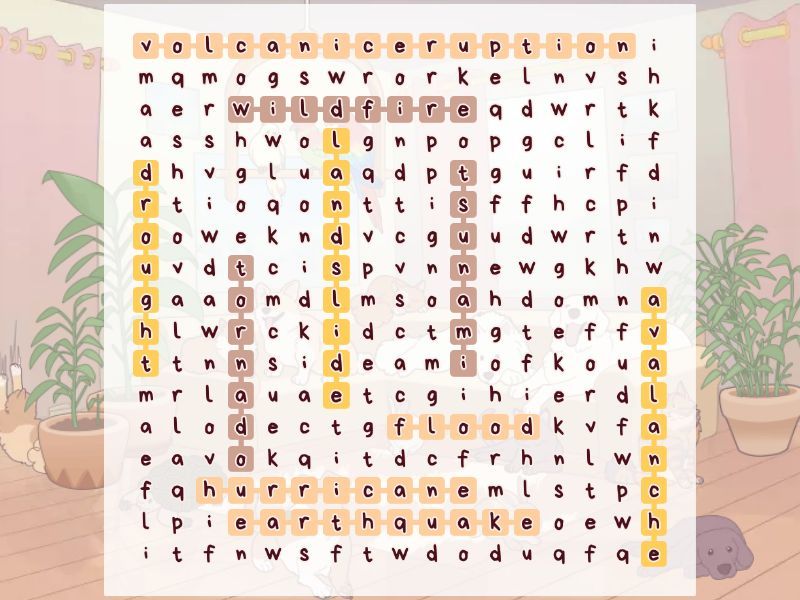 volcanic eruption, landslide, tornado, hurricane, avalanche, wild fire, flood, drought, tsunami, earthquake,