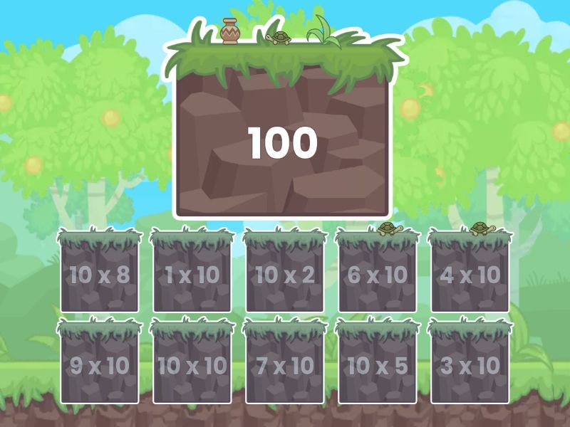 10 x 10 - 100, 10 x 8 - 80, 7 x 10 - 70, 9 x 10 - 90, 6 x 10 - 60, 10 x 5 - 50, 4 x 10 - 40, 3 x 10 - 30, 1 x 10 - 10, 10 x 2 - 20,