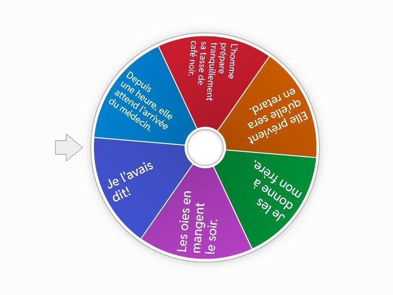 1) Depuis une heure, elle attend l'arrivée du médecin. a) depuis une heure b) elle c) attend d) l'arrivée e) du médecin f) l'arrivée du médecin 2) L'homme prépare tranquillement sa tasse de café noir. a) l'homme b) prépare c) tranquilement d) sa tasse e) de café noir f) sa tasse de café noir 3) Elle prévient qu'elle sera en retard. a) elle b) prévient c) qu'elle sera d) en retard e) qu'elle sera en retard. 4) Je les donne à mon frère. a) je b) les c) donne d) à mon frère 5) Les oies en mangent le soir. a) les oies b) en c) mangent d) le soir 6) Je l'avais dit! a) je b) l' c) avais d) dit e) avais dit