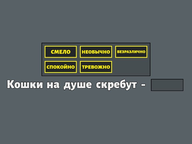 Кошки на душе скребут - ____ По пальцам можно пересчитать - ____ Не робкого десятка - ____ Водой не разольешь - ____ На всех парусах - ____