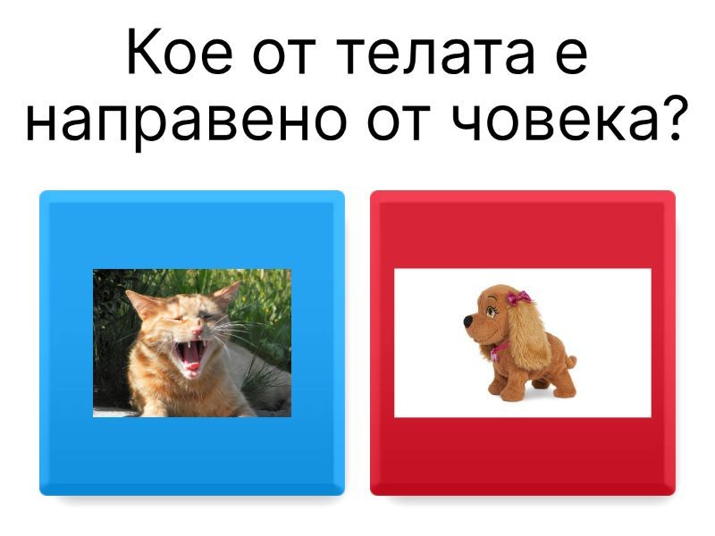 1) Кое от телата е направено от човека? a) b) 2) В килограми се измерва: a) масата и обемът на телата b) само масата 3) Подходящи за режещи инструменти и остриета са: a) пластичните материали b) твърдите материали 4) Кое е най-подходящ материал за изработване на ножици? a) пластмаса b) стомана 5) Кое твърдение не е вярно? Прозрачни материали са: a) металите b) повечето стъкла 6) Непромокаемите материали не пропускат: a) вода b) светлина 7) Постоянен обем имат: a) твърдите тела и течностите b) твърдите тела, течностите и газовете 8) Кое от изброените тела няма постоянна форма? a) книга b) олио 9) Кое свойство на водата използваме, когато си приготвяме чай? a) няма мирис b) разтворимост 10) Ако прелеем вода от малко шише в голяма тенджера обемът на водата: a) няма да се промени b) ще нарастне 11) Разтвор се получава при смесване на: a) вода и сол b) сол и захар 12) Повечето метали са: a) твърди вещества b) течности 13) За да диша всяко живо същество се нуждае от: a) вода b) въздух 14) Кое от изброените свойства се отнася за чистата вода, но не и за чистия въздух? a) няма мирис b) не поддържа горенето 15) На кой ред са изброени само вещества, които се разтварят във водата? a) сол, захар, боя за храна b) тебешир, сол, захар