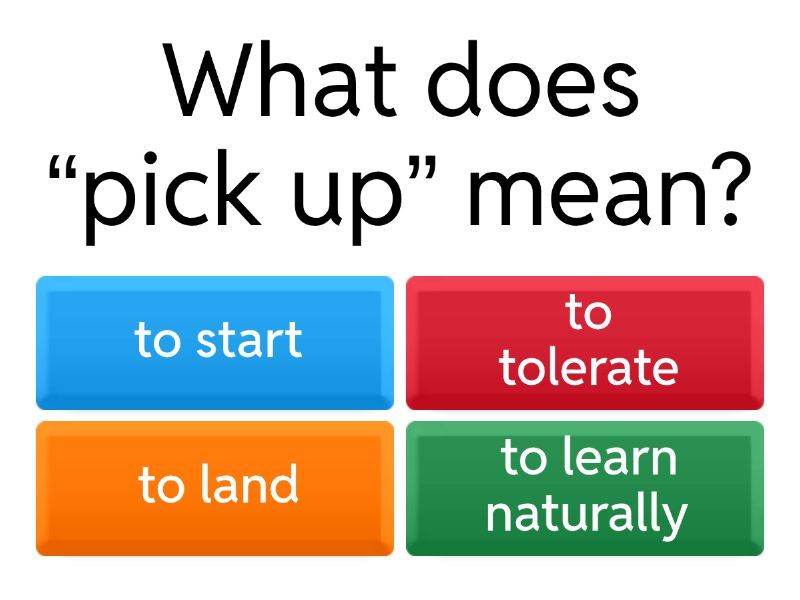 1) What does “pick up” mean? a) to start b) to tolerate c) to land d) to learn naturally 2) What does “set out” mean? a) experience difficulties b) start a journey c) become tired d) to land 3) “Put up with” means… a) to learn b) to cause c) to start d) to tolerate 4) “Touch down” is used when… a) a plane lands b) a person leaves c) a journey starts d) a result changes 5) “Wear out” means… a) to land b) experience something c) cause something d) make someone tired 6) “Bring about” means… a) to start b) cause something c) have a result d) tolerate a situation 7) “Go through” means… a) to land b) start travelling c) learn quickly d) experience difficulties 8) “Turn out” means… a) land b) have a result c) start something d) to tolerate
