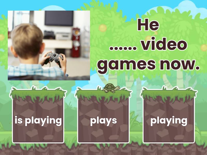 1) He ...... video games now. a) is playing b) plays c) playing 2) My father...... the windows now. a) cleaning b) cleans c) is cleaning. 3) Jenny ......... home with Jennifer. a) goes b) is going c) are going 4) The boy .... in his room. a) is crying b) cry c) crys 5) Mrs Green ..... Maths. a) teaching b) teaches c) is teaching 6) We ....... chocolate cake- a) are makeing b) are making c) making 7) Henry and his brother ...... a film on TV. a) watches b) are watching c) is watching 8) Anna and Petra .... Stranger Things now. a) watches b) is watching c) are watching 9) He ..... golf at the moment. a) is playing b) are playing c) am playing d) playing 10) Peti and Kata .... a cake. a) is baking b) are baking c) baking d) am baking