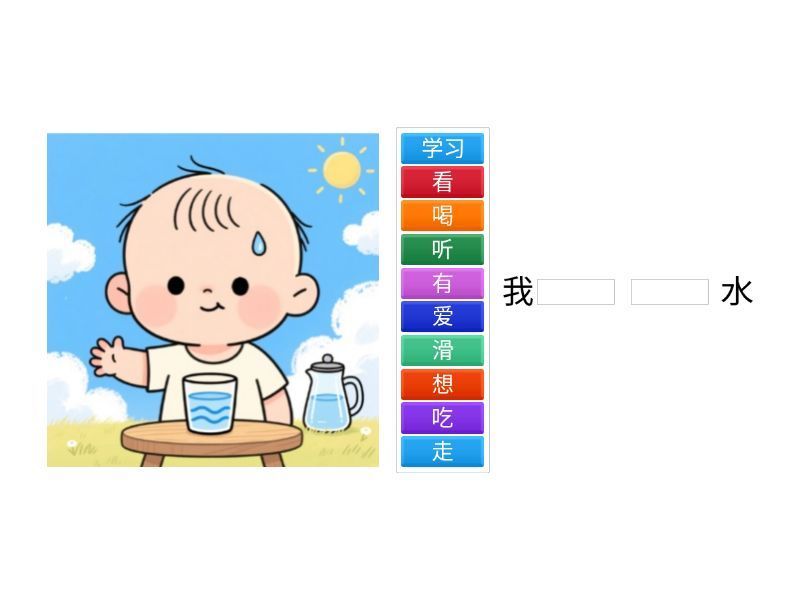 我____ ____ 水 我 ____ ____ 苹果 我 在 ____ 我 ____ ____ 冰 我 ____ ____ 水 我 ____ ____ 苹果 我 ____ ____ 我 ____ ____ 冰 我 ____ ____ 我 ____ 猫 我 ____ 爸爸 妈妈 我 ____ ____ 中文
