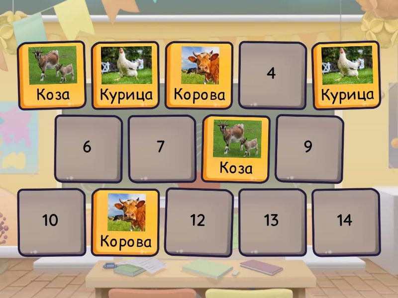 Корова, Коза, Курица, Овца, Свинья, Собака, Кот,