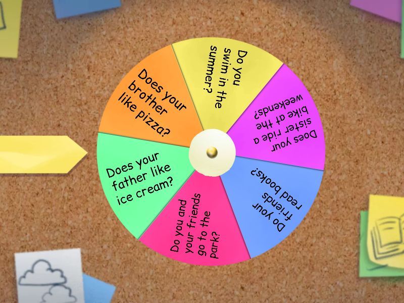 1) Does your father like ice cream? a) Yes, he does b) Yes, he do 2) Does your brother like pizza? a) Yes, he do b) No, he doesn't 3) Do you and your friends go to the park? a) Yes, we do b) Yes, we does 4) Do you swim in the summer? a) No, I doesn't b) Yes,I do 5) Does your sister ride a bike at the weekends? a) Yes, she do b) No, she doesn't 6) Do your friends read books? a) No, they don't b) No, they doesn't