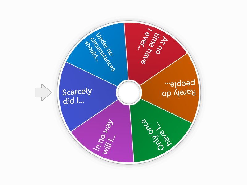 1) Under no circumstances should... 2) At no time have I ever... 3) Rarely do people... 4) Only once have I... 5) In no way will I... 6) Scarcely did I...