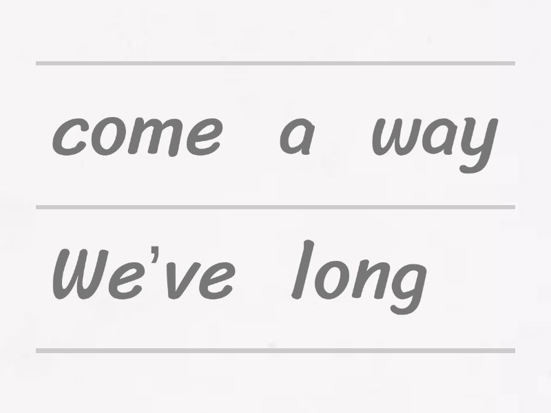 We’ve come a long way, Hit the road, Look at things different, see the bigger picture, Hard work forever pays, Standing there by my side,
