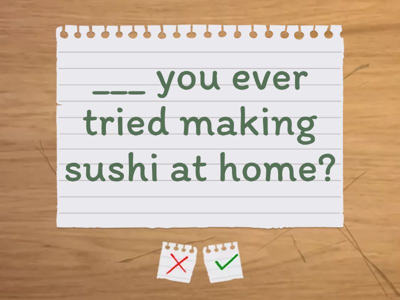 ___ you ever tried making sushi at home? - Have you ever tried making sushi at home?, When ___ they arrive at the airport? (past) - When did they arrive at the airport?, Why ___ she crying right now? - Why is she crying right now?, ___ he finished all his tasks already? - Has he finished all his tasks already?, Where ___ they living at that time? (past) - Where were they living at that time?, Why ___ she leave so early yesterday? - Why did she leave so early yesterday?, What ___ she been doing all afternoon? - What has she been doing all afternoon?, ___ he been working here before he moved abroad? - Had he been working here before he moved abroad?, Why ___ she been so quiet lately? - Why has she been so quiet lately?, How long ___ she been waiting before you arrived? - How long had she been waiting before you arrived?, ___ you think it’s possible to finish this today? - Do you think it’s possible to finish this today?,