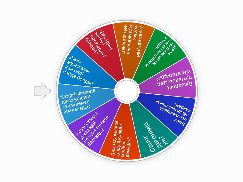 1) Джаз музыкасы қай елді пайда болды? a) Луи Армстронг b) АҚШ-та 2) Джаздың негізгі ерекшелігі қандай? a) Импровизиция b) Саксофон 3) Джаз қандай халық музыкасына негізделген? a) Поп b) Афроамерикалық және блюз музыкасына 4) Джаз музыкасының негізгі аспаптары қандай? a) электронды барабан b) Саксофон, барабан, труба, фортепиано, контробас 5) Джаздың патшасы деп кім аталады? a) Нью-Ореандо b) Луи Армстронг 6) Блюз бен джаздың айырмашылығы қандай? a) Джаздағы ырғақты бағыт b) Блюз лирикалық, қайғылы, ал джаз ырғақтыжәне импровизацияға бай 7) Свинг дегеніміз не? a) Джаздағы ырғақты бағыт, 1930 жылдары танымал болған b) джаз ырғақты және импровизацияға бай 8) Джаз музыкасы қандай қалада кеңінен дамыды? a) Нью-Орлеанда b) Луи Армстронг 9) Қазақстанда джаз қай кезден таныла бастады? a) 20 ғасыр b) 19 ғасыр 10) Қазіргі заманда джаз қандай стильдемен араласады? a) хипхоп b) поп, рок, хип-хоп, электроника