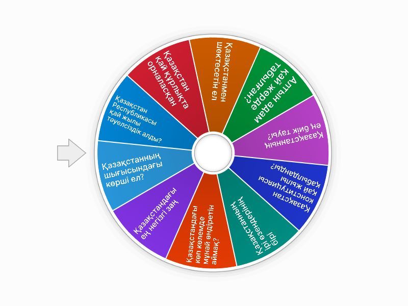 1) Қазақстан Республикасы қай жылы тәуелсіздік алды? a) 1991 b) 1986 2) Қазақстан қай құрлықта орналасқан a) Азия b) Еуропа 3) Қазақстанмен шектесетін ел a) Жапония b) Қытай 4) Алтын адам қай жерде табылған? a) Түркістан b) Алматы облысы 5) Қазақстанның ең биік тауы? a) Алтай b) Хан тәңірі 6) Қазақстан конституциясы қай жылы қабылданды? a) 1991 b) 1995 7) Қазақстанның ірі өзендерінің бірі a) Ертіс b) Енесей 8) Қазақстандағы көп көлемде мұнай өндіретін аймақ? a) Түркістан b) Каспий 9) Қазақстандағы ең негізгі заң a) Конституция b) Жарғы 10) Қазақстанның шығысындағы көрші ел? a) Қытай b) Әзірбайжан