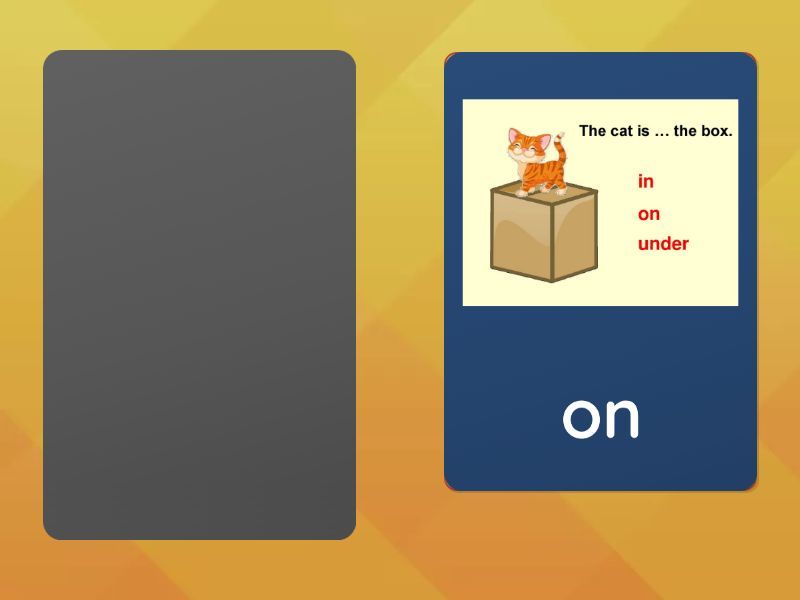 Where is a cat? Where are cats?, behind, in front of, next to , on, under, in.