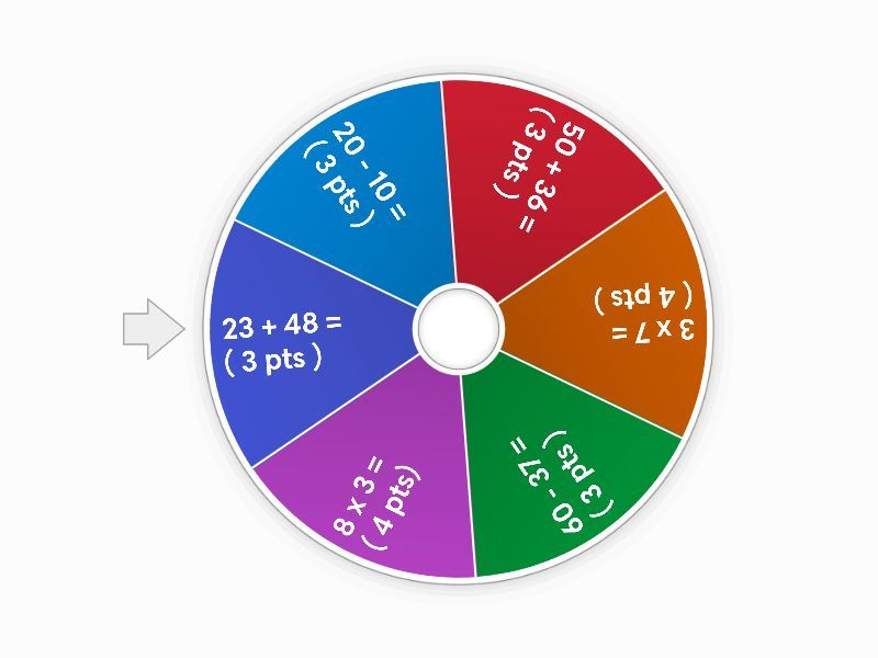 1) 20 - 10 = ( 3 pts ) 2) 50 + 36 = ( 3 pts ) 3) 3 x 7 = ( 4 pts ) 4) 60 - 37 = ( 3 pts ) 5) 8 x 3 = ( 4 pts) 6) 23 + 48 = ( 3 pts )