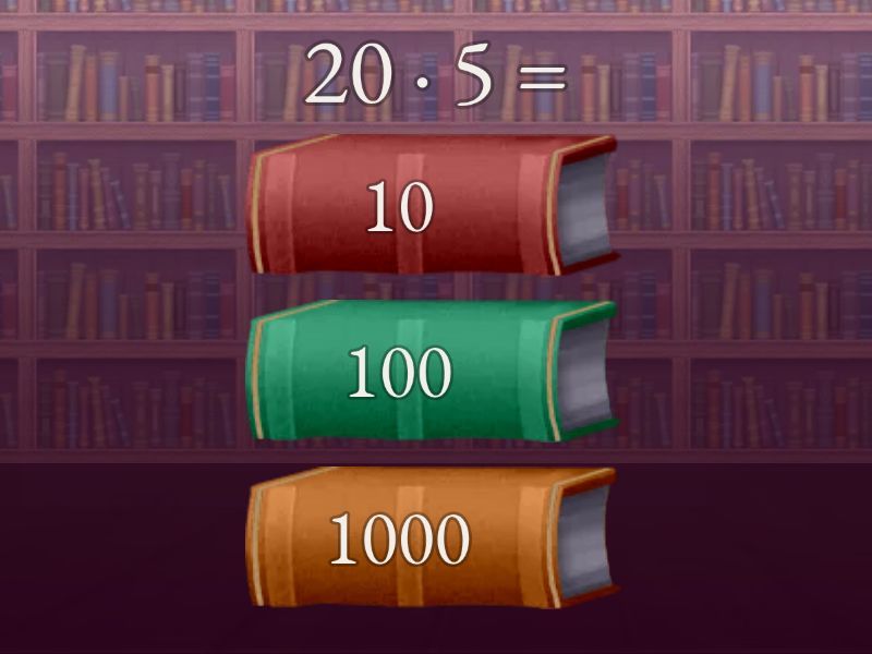 1) 20 · 5 = a) 10 b) 100 c) 1000 2) 1000 : 20 = a) 5 b) 50 c) 500 3) 4 · 25 = a) 100 b) 1000 c) 125 4) 100 : 4 = a) 20 b) 25 c) 15 5) 100 : 25 = a) 4 b) 5 c) 6 6) 8 · 125 = a) 1000 b) 100 c) 900 7) 1000 : 125 = a) 4 b) 5 c) 8 8) 1000 : 8= a) 25 b) 125 c) 20 9) 2 · 4 · 125 = a) 100 b) 1000 c) 500 10) 4 · 5 · 5 = a) 100 b) 20 c) 1000