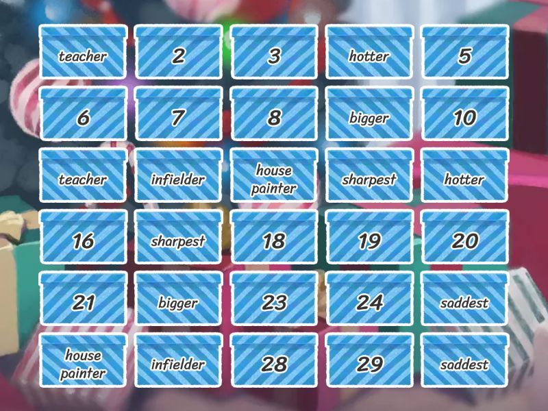 bigger, infielder, hotter, saddest, sharpest, house painter, teacher, slower, air fryer, hiker, quicker, fuller, bravest, smoother, narrowest,