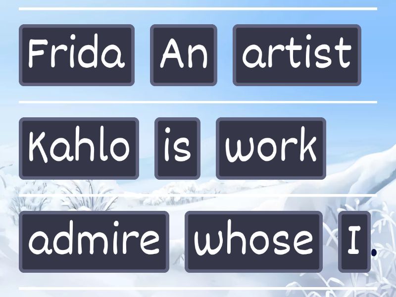 An artist whose work I admire is Frida Kahlo., Something that I’d love to own would be a pair of designer sunglasses., The time when I am most creative is late at night., The colour which I wear most often is vivid-pink!, The best gallery in the world, where many famous artworks are housed, is the National Gallery in London., My favourite possession, which is decorative rather than useful, is a poster of Van Gogh’s sunflowers., I don’t like artwork that I don’t understand., I like the work of artists who push the boundaries of art., My family, when I think about it, were always my hugest supporters.,