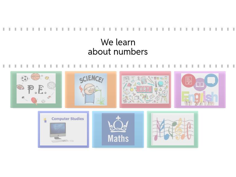 We learn about numbers, We draw and paint., We learn about plants and animals., We do gymnastics and play games., We learn new words., We learn about computers., We play the guitar.,