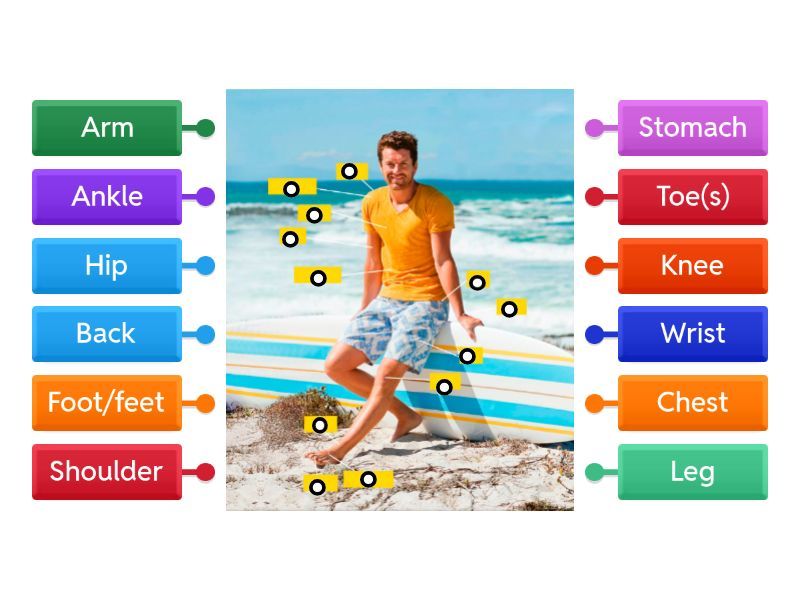 Back, Shoulder, Chest, Arm, Stomach, Wrist, Leg, Knee, Ankle, Hip, Toe(s), Foot/feet.
