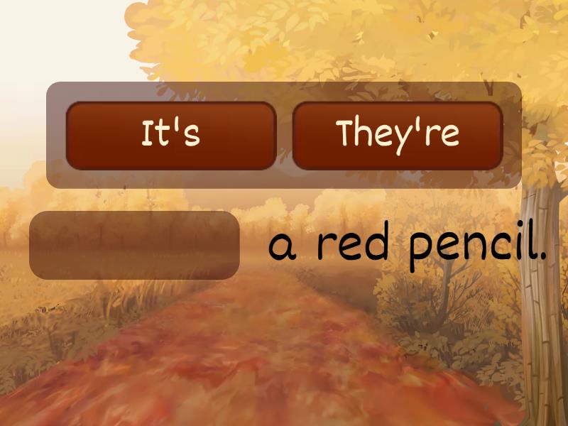 ____ a red pencil. ____blue pens. ____ a green notebook. ____big bins. ____good desks. ____ a nice board. It's ____ruler. It's ____ orange. It's ____ box. It's ____ elephant.
