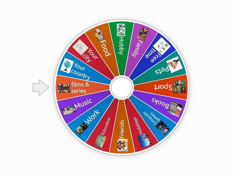 1) Your country 2) Your city 3) Food 4) Hobby 5) Family 6) Free time 7) Pets 8) Sport 9) Books 10) Computer games 11) Holidays 12) Friends 13) Education 14) Work 15) Music 16) films & series