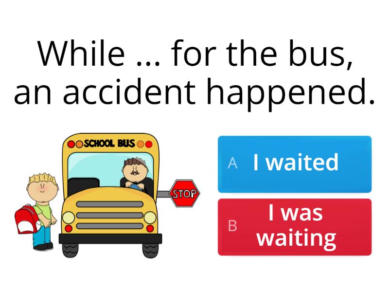 1) While ... for the bus, an accident happened. a) I waited b) I was waiting 2) Fay ... in the park when she found 20 dollars. a) was walking b) walked 3) While Bill was riding his bike, he ... to music on his MP3 player. a) was listening b) listened 4) Sam saw a dolphin while he ... a) swam. b) was swimming. 5) Claire was ironing when her phone ... a) was ringing. b) rang. 6) Claude was painting his bedroom walls while Mrs Williams ... a) was sleeping. b) slept. 7) Claude was painting his bedroom walls when he ... a scream. a) heard b) was hearing 8) When the fire alarm went off, the cat ... out of the window. a) was jumping b) jumped 9) Tom was studying when Claire ... a) was calling b) called 10) It ... hard when he fell off his bike. a) was raining b) rained