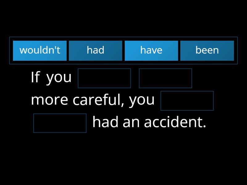 If you ____ ____ more careful, you ____ ____ had an accident. If I ____ ____ you, I ____ ____ said hello. I ____ ____ taken a photo if I ____ brought my camera with me. She ____ ____ gone to your birthday party if she ____ ____ sick. ____ you ____ told me if ____ known about it? What ____ you ____ done if you ____ been me? If it ____ rained, ____ you ____ had the picnic? If I ____ studied, I ____ have failed the exam. If they ____ come, I ____ ____ been disappointed