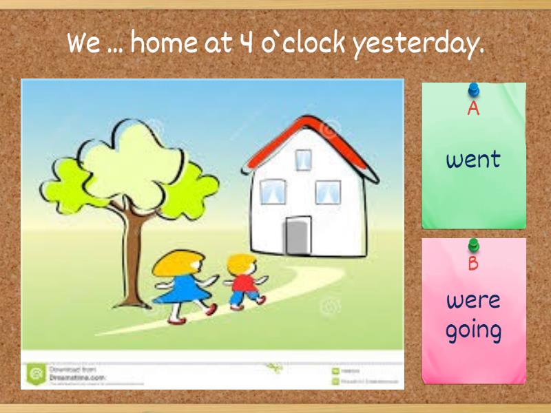1) We ... home at 4 o`clock yesterday. a) went b) were going 2) I ... home late two days ago. a) went b) was going 3) Children ... basketball from 5 to 6 last Wednesday. a) was playing b) were playing c) played 4) My mother ... the window all the morning last Saturday. a) was cleaning b) cleaned 5) I ... to the park yesterday. a) wasn`t going b) didn`t went c) didn`t go 6) Tom and Linda ... for a bus about 20 minutes yesterday. a) was waiting b) were waiting c) waited 7) I ... yesterday at 4 o`clock, I ... the poem the whole evening. a) wasn`t walking / was learning b) didn`t walk / learned c) wasn`t walk / was learning 8) I ... a new cartoon yesterday, I ... at that time. a) didn`t watched / was studying b) wasn`t watching / studied c) didn`t watch / was studying