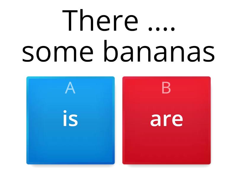 1) There .... some bananas a) is b) are 2) There ... potatoes in the kitchen a) Are b) Is 3) There .... some water in the frigde. a) is b) Are 4) There ... rice in the cupboard a) Are b) Is 5) There is ...... milk in the fridge. a) A little b) Any 6) There is.......pineapple. a) A b) An c) Some 7) There is ... orange juice for the party. a) Any b) A lot of 8) There ... some flour on the floor. a) Are b) Is 9) There are... apples on the table. a) A b) An c) Some 10) There isn't ... bread. Go to the shop to buy more, please. a) A b) Any c) Some 11) There ... some sandwiches on the plate. a) Is b) Are 12) Adrian eats... orange in the mornings. a) A b) An c) Some