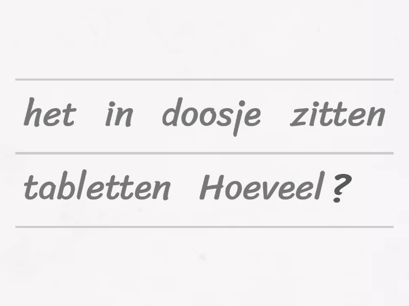 Hoeveel tabletten zitten in het doosje?, Ik kan u op de wachtlijst zetten., Bij welke drogist doe jij boodschappen?, Kan ik u verder nog ergens mee helpen?, Hebt u nog vragen over de medicijnen?, Hoeveel keer per dag moet ik de medicijnen innemen?, De dokter geeft haar een recept voor slaappillen., Meneer de Jong heeft geen goede gezondheid., Hij heeft verschrikkelijke pijn in zijn rug., Hij haalt de pillen op bij de apotheek.,