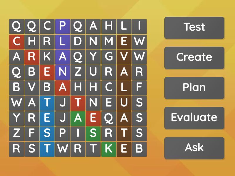 Ask - Ask, Plan - Plan, Create - Create, Test - Test, Evaluate - Evaluate,