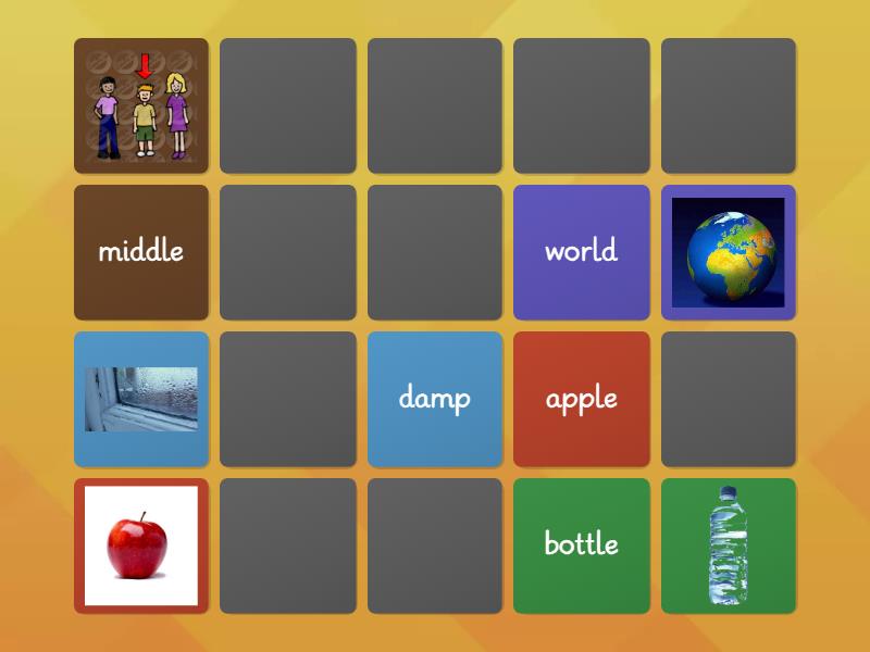 bottle, world, apple, damp, middle, continent - Africa and Asia are examples of this, little - Stuart ------, syllable - Words can be broken into these parts, stand, table,