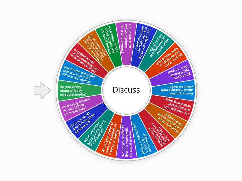 What social networking site do you prefer? , How many people do you follow on Instagram?, What are some bad points about social media? , What are some good points about social media? , How many hours a day do you use on social media? , Do you check any websites at least once a day?, Would you prefer to live in a world with no social media? , Do you feel you are addicted to social media? Do you know anyone who is?, Could you turn off your phone for a whole week? , What does social media mean to you? , What is inappropriate to share on social media? , Do you worry about privacy on social media? , Do your parents use any social networking sites? , Should companies ban their employees from using social networking sites at work? At School?, How are social networking sites dangerous?, Are social networking sites changing our daily behaviour?, Would you prefer to meet new people at a party or online?, Is it possible that social networking sites make people lonelier?, How do you feel about meeting people online for dates?, What is the one thing that you love most about social media?.