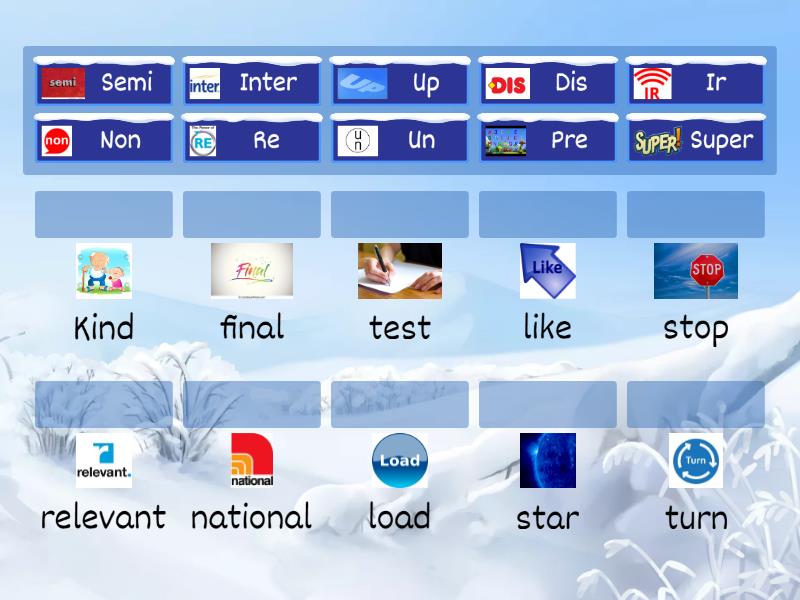 Inter - national , Pre - test, Dis - like, Un - Kind, Up - load, Semi - final, Ir - relevant, Super - star, Re - turn, Non - stop,