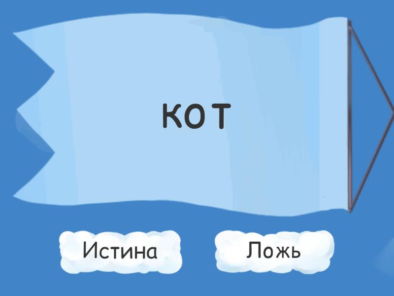 Истина: кот, человек, цветок, собака, бабочка, машина, Ложь: прыгать, плыть, летать, лаять, бегать, идёт,