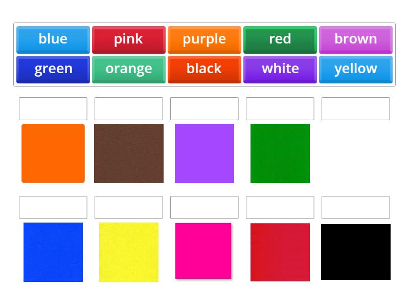 green, yellow, orange, brown, blue, black, red, white, pink, purple,