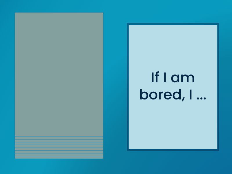 If I am tired, I ..., If I want to do something interesting, I ..., If I am bored, I ..., If I need some help, I ..., If I don't want to do my homework, I ..., If I don't want to sleep, I ..., If I want to buy something, I ..., If I am ill, I ..., If I miss my friend, I ..., If the weather is bad, I ....