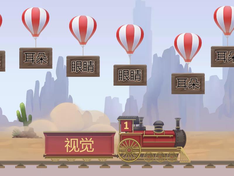 耳朵 - 听觉, 鼻子 - 嗅觉, 皮肤 - 触觉, 眼睛 - 视觉, 舌头 - 味觉,