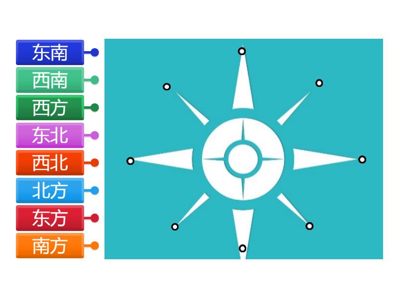 北方, 东方, 南方, 西方, 东北, 东南, 西南, 西北.