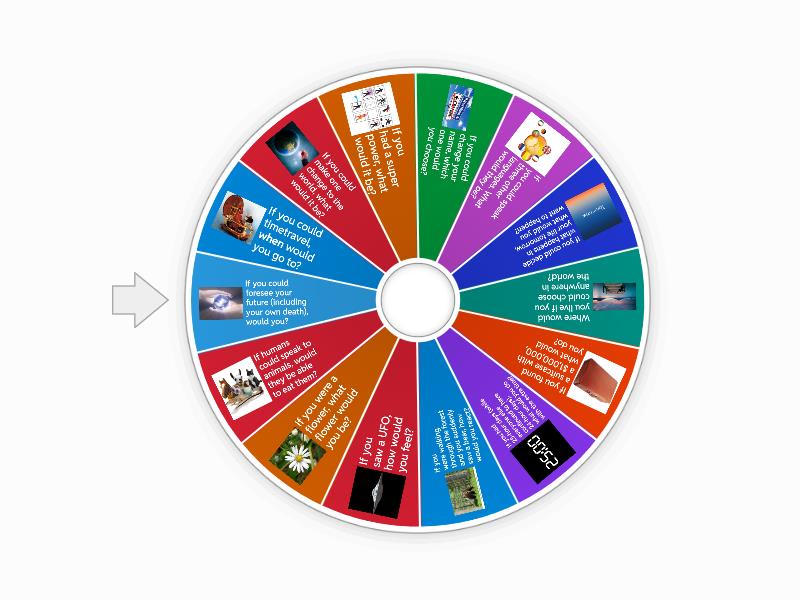 1) If you could timetravel, when would you go to? 2) If you could make one change to the world, what would it be? 3) If you had a super power, what would it be? 4) If you could change your name, which one would you choose? 5) If you could speak three other languages. What would they be? 6) If you could decide what happens in your life tomorrow, what would you want to happen? 7) Where would you live if you could choose anywhere in the world? 8) If you found a suitcase with a $1,000,000, what would you do? 9) If you had 25-hour days (while everyone else continued to have 24-hour days), what would you do with the extra time? 10) If you were walking through the forest and you suddenly saw a bear, how would you react? 11) If you saw a UFO, how would you feel? 12) If you were a flower, what flower would you be? 13) If humans could speak to animals, would they be able to eat them? 14) If you could foresee your future (including your own death), would you?