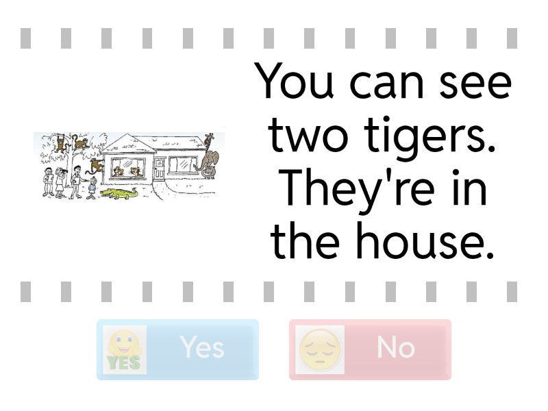 Yes: You can see two tigers. They're in the house. , The crocodile's mouth is open. , The girl is wearing a blue T-shirt today. , No: One of the men is waving at the elephant. , The woman is writing about the animals. , There are three monkeys in the tree. ,